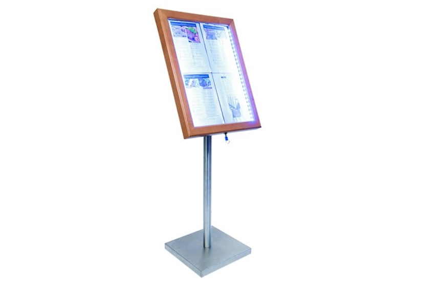 LED-Informationsdisplay 4 x A4 helles Holz 53 x 70 x 6 cm, Wandmontage oder Standfuss ink. 5m langem Stromkabel oder mit Securitbatterien (nicht inkl.) Innen und Aussen geeignet