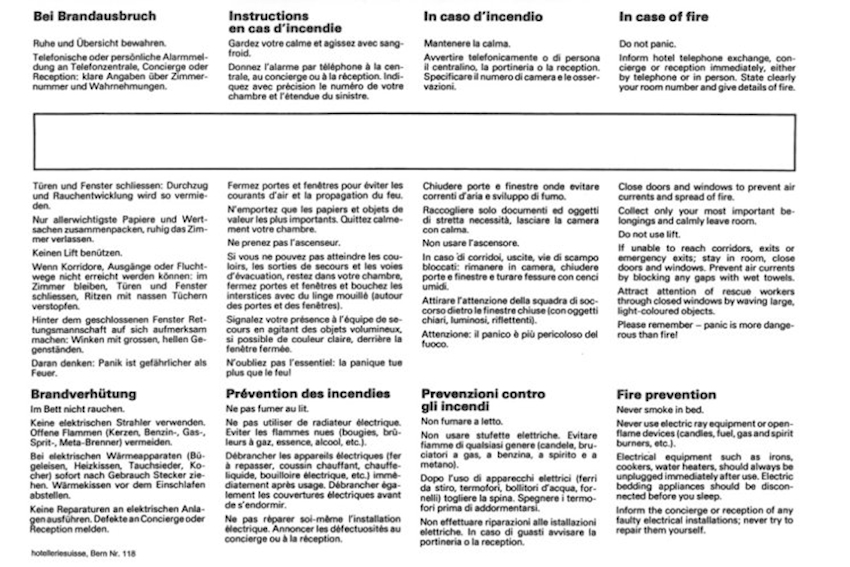 Brandschutzmassnahmen im Hotel Instruktion: D,F,I,E 30x21 cm Set= 50 St.