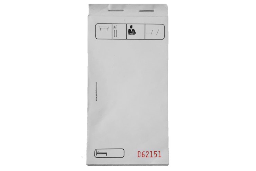 nummeriert, Piktogramm-Vordruck: „Tisch / Gedecke / Kellner / Datum / Zimmer