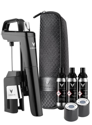 Coravin Six Set black, mit 1 Tragtasche, 3 Patronen, + 2 Korken für Schraubverschlüsse, Material: Polycarbonat, Edelstahl, Bestelleinheit = Stück