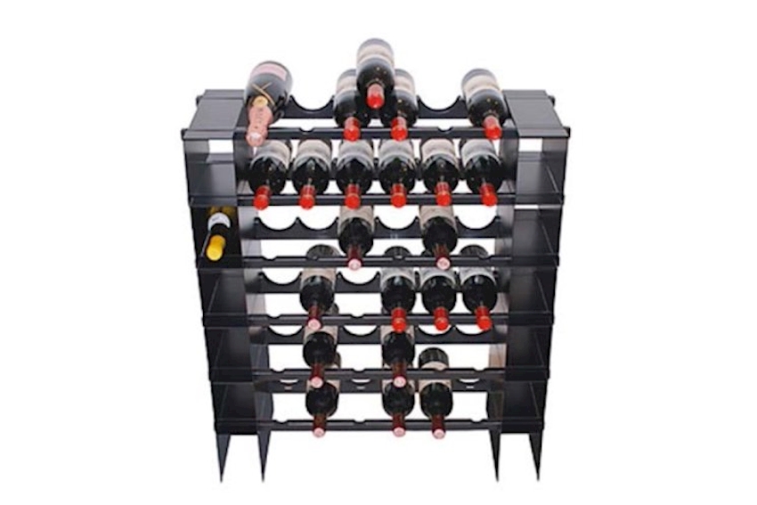 das Lagersystem für 6 Flaschen in Linie bestehend aus 6 Lagen für 6 Flaschen zzgl. Einzelflaschenlagerung in den Säulen (=48 Flaschen)