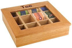 Teebox Holz mit Sichtfenster 12 Kammern für kuvertierte Teebeutel, 31 x 28 x 9 cm Art.Nr.: 5403-11775 Stück CHF 39.60 Zur Merkliste hinzufügen Zum Vergleich hinzufügen Zum Warenkorb hinzufügen
