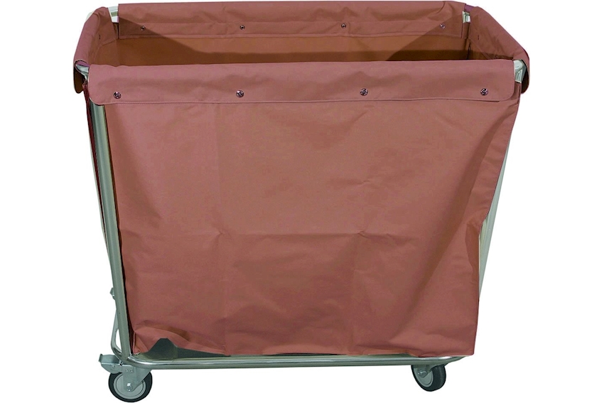 acier nickel-chromé 18/8 + 18/10, tuyau Dm 2.4 cm, 4 roues dm 10 cm (dont 2 avec freins), sac à linge en polyester lavable à 40°C, livré monté