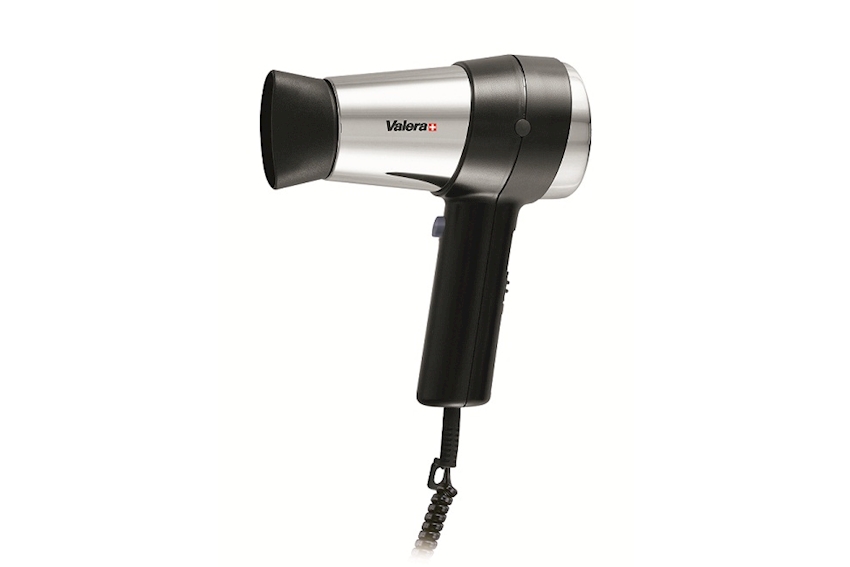 noir / chrome avec câble spirale et prise pour le service mobile (ou mon- tage fixe avec support mural art. 1023-034 / -033 / -035) boutons on/off, 2 positions d'air, 3 de tém- perature et 1 COOL, avec buse é ondu- ler et anneau de suspension