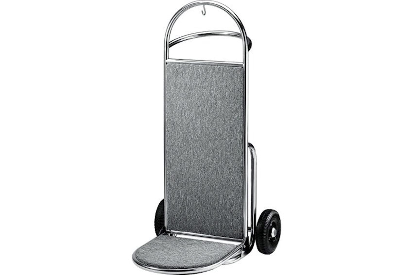 chariots à bagages 74 x 45 x 122 cm, 14 kg acier nickel-chromé soudé, tuyau DM 2.4 cm, roues DM 20 cm, tapis gris, livré monté